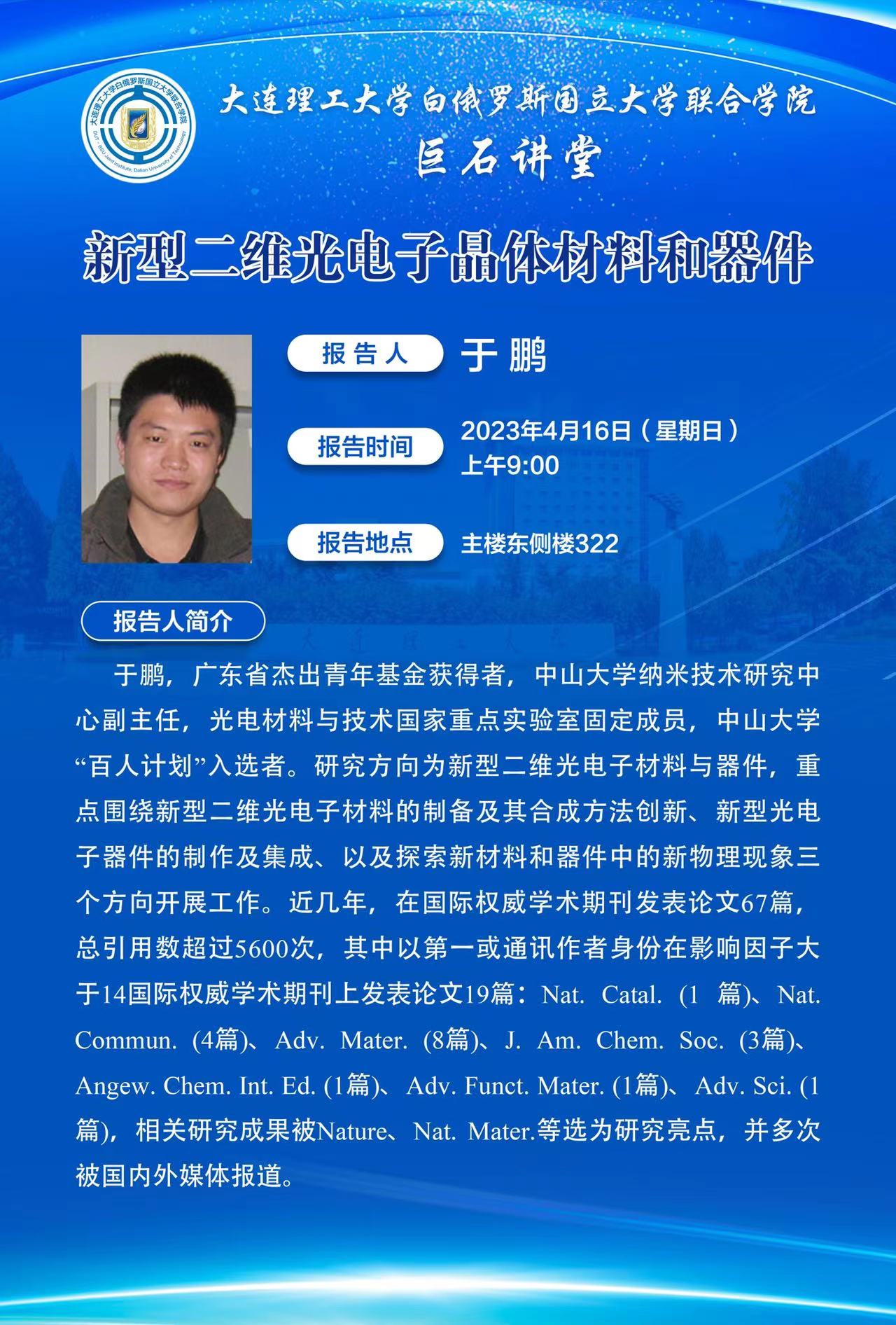 随着器件朝着小型化、柔性化、低功耗、高度集成化等方向的发展,传统硅基器件的固有缺陷,如:接近摩尔定律极限的硅基半导体制作技术、硅基材料的光吸收系数小以及吸收光谱窄等问题,使其很难满足未来光电子探测器领域的需求。因此,探索新材料和新原理器件成为解决半导体产业未来发展瓶颈的必由之路,也是后摩尔时代纳米光电子器件的前沿科学问题。二维材料具有柔韧性好、光吸收效率高、光响应范围广、可与金属氧化物半导体(CMOS)工艺实现无限兼容等特性,很好的弥补了晶体硅材料的缺陷,在纳米光电子器件应用中表现出了良好的发展潜力。在此报告中,报告人将从新型二维光电子晶体的创新出发,重点介绍最近几年在新型光电子晶体研制的一些进展。