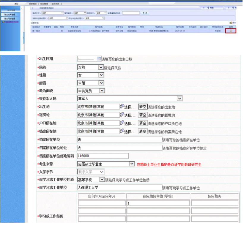 招生信息化水平,方便招生导师及时查看本人招生报考情况。博士招生报名系统新增导师招生审核端口,现将审核考生网报审核意见功能模块介绍如下: